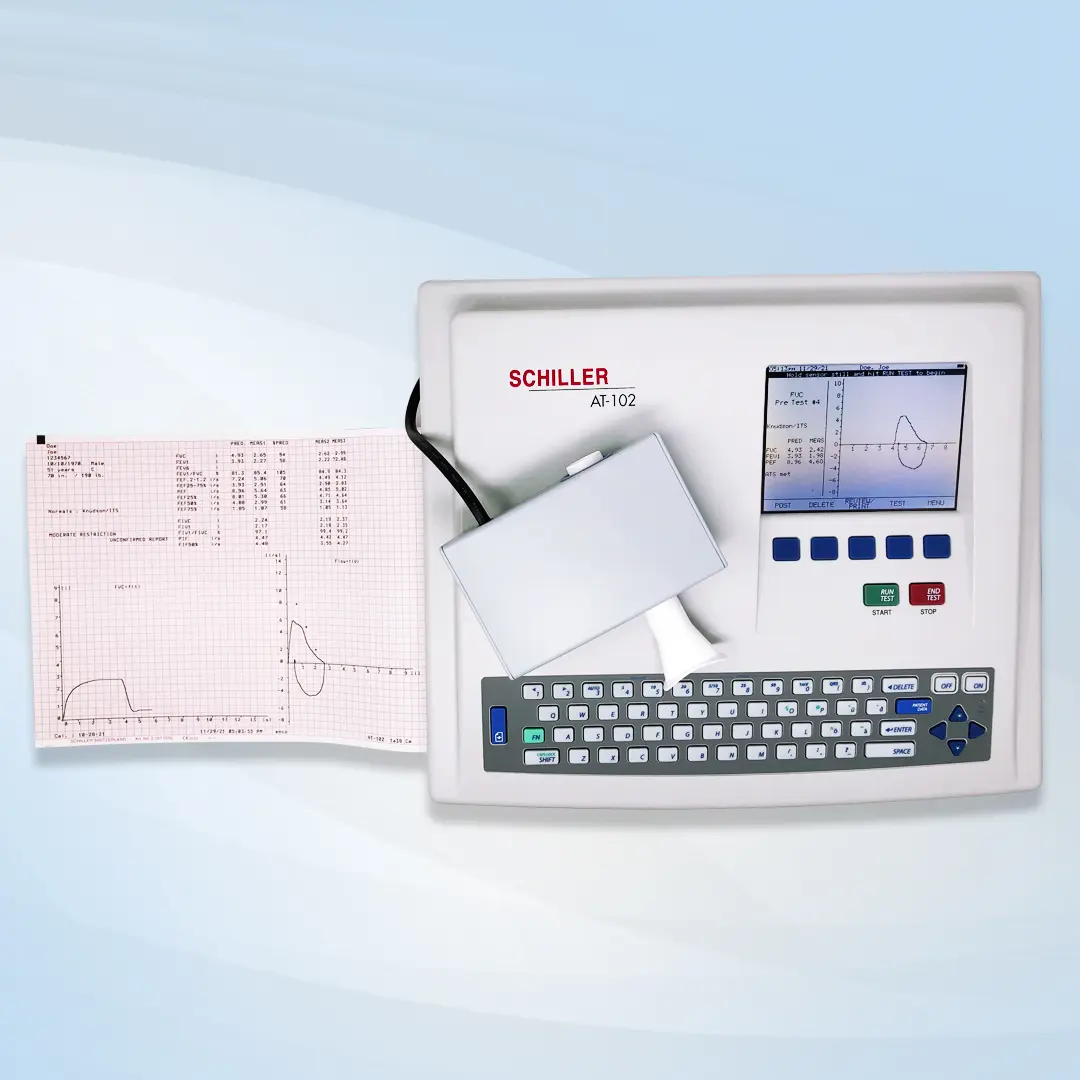 CARDIOVIT AT-102 SCM SP combines two frequently used tests—cardiac 12-lead and ultrasonic pulmonary function—into one unit. This redesigned device is an outstanding choice due to its economical operation, reliability, and potential for dual reimbursement.